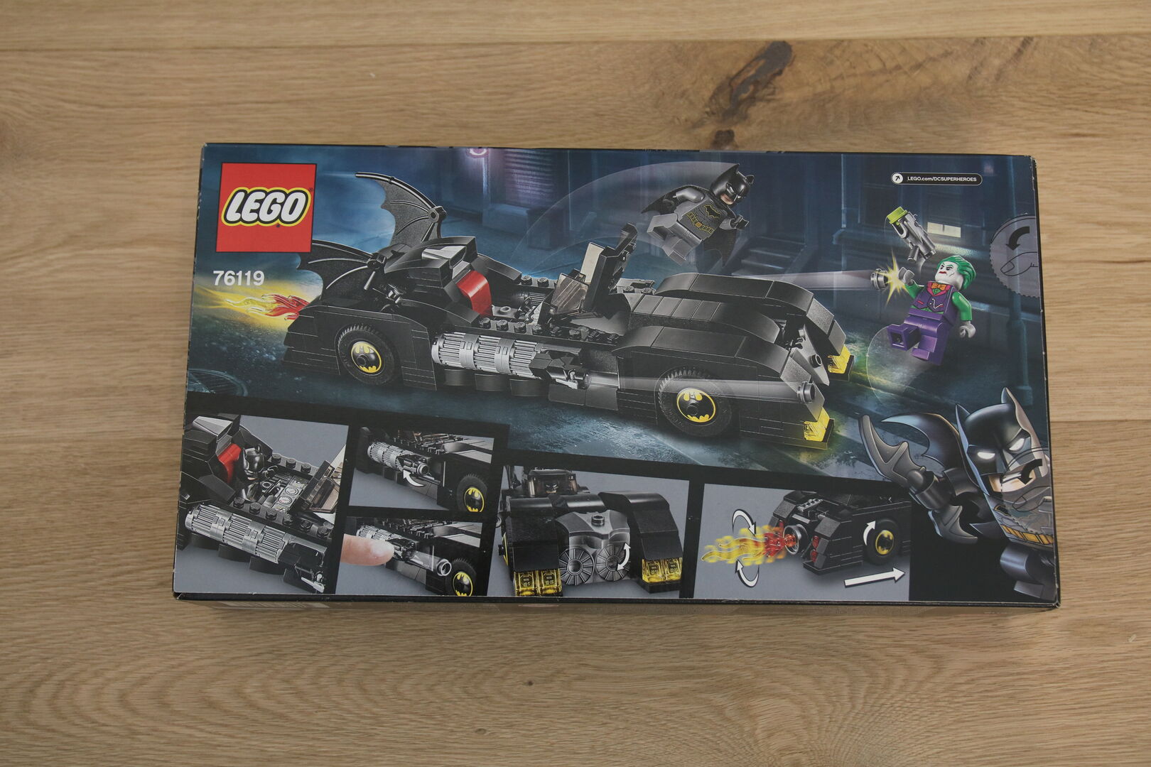 Kinder werden es lieben, Batman bzw. der Joker zu sein dank des LEGO DC Batman Sets ,Batmobile: Verfolgungsjagd mit dem Joker ,(76119). Dieses klassische Batmobile Spielzeugautomodell bietet viele auffällige Details, um kleine Superhelden zu begeistern, u. a. ein detailliertes Armaturenbrett im sich öffnenden Minifiguren Cockpit, eine Fledermaussymbol Dekoration auf den Radfelgen und ein Flammenauspuffelement, das sich automatisch dreht, wenn das Auto angeschoben wird. Die versteckten, ausklappbaren Shooter des Batmobile sind ideal für Duelle gegen den Joker, der ebenfalls über einen Shooter verfügt. Das LEGO Batman Spielset enthält 2 Minifiguren. Kinder können ihre Modelle, Minifiguren und Ausrüstung mit dem mitgelieferten Paket aus 10 verschiedenen Fledermauselementen individuell gestalten. Mit Instructions PLUS wird jedem LEGO Baumeister ein tolles Bauerlebnis geboten. Diese digitalen Bauanleitungen gibt es jetzt in der LEGO Life App für Smartphones und Tablets. Diese benutzerfreundlichen und intuitiven digitalen Bauanleitungen ermöglichen es den Baumeistern, ihr Modell heranzuzoomen, zu drehen und mithilfe des speziellen Geistermodus zu visualisieren. Instructions PLUS eignet sich zudem perfekt für jüngere Baumeister, da es sie durch den Bauvorgang leitet und ein stärkeres Gefühl der Unabhängigkeit sowie tolle Erfolgserlebnisse bietet. Das Superhelden Spielzeug enthält 2 LEGO Minifiguren (neu ab Juni 2019): Batman und den Joker. Das Batmobile verfügt über ein sich öffnendes Minifiguren Cockpit mit detailliertem Armaturenbrett, 2 versteckte, ausklappbare Shooter, eine Motorhaube mit Motor aus Steinen im Inneren, eine automatische, sich drehende Flammenauspuffanlage, Radfelgen mit Fledermaussymbol Dekoration, 2 Batwings und transluzente durchsichtig gelbe und rote Lichtelemente. Das Flammenauspuffelement dreht sich, wenn das Fahrzeug angeschoben wird. Das LEGO Batman Spielset enthält den Shooter des Jokers und 10 verschiedene Fledermauselemente zum Anpassen von Modellen, Minifiguren und Ausrüstung. Dieses coole Kinderspielzeug ist für Batman Fans das beste Superhelden Geschenk. Über die LEGO Life App können alle Baumeister auf die intuitiven Bauanleitungen von Instructions PLUS für dieses Superhelden Spielzeug zugreifen. Damit können auch jüngere Baumeister an ihr Modell heranzoomen, es drehen und mithilfe des speziellen Geistermodus visualisieren. Das Batmobile ist 7 cm hoch, 24 cm lang und 6 cm breit.