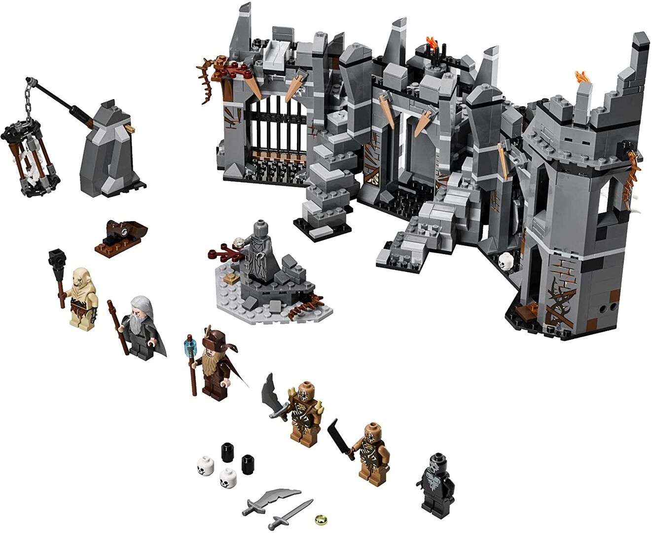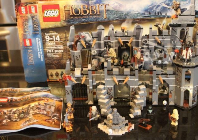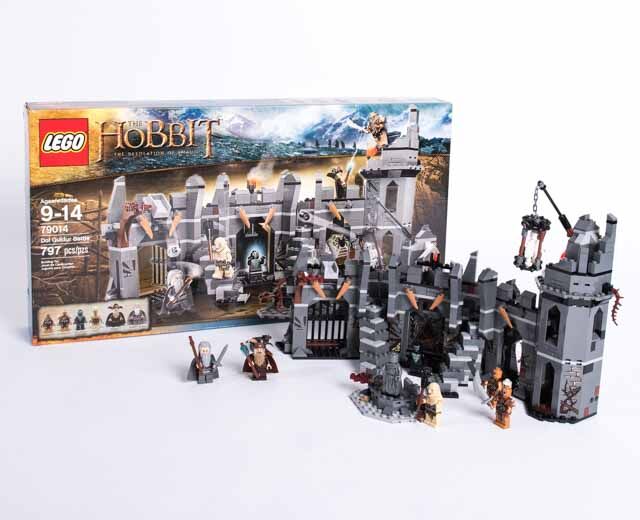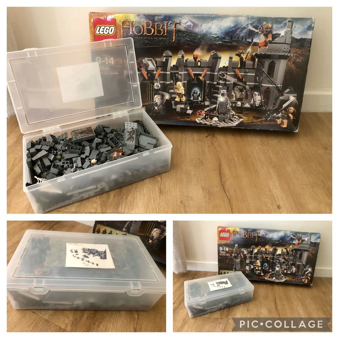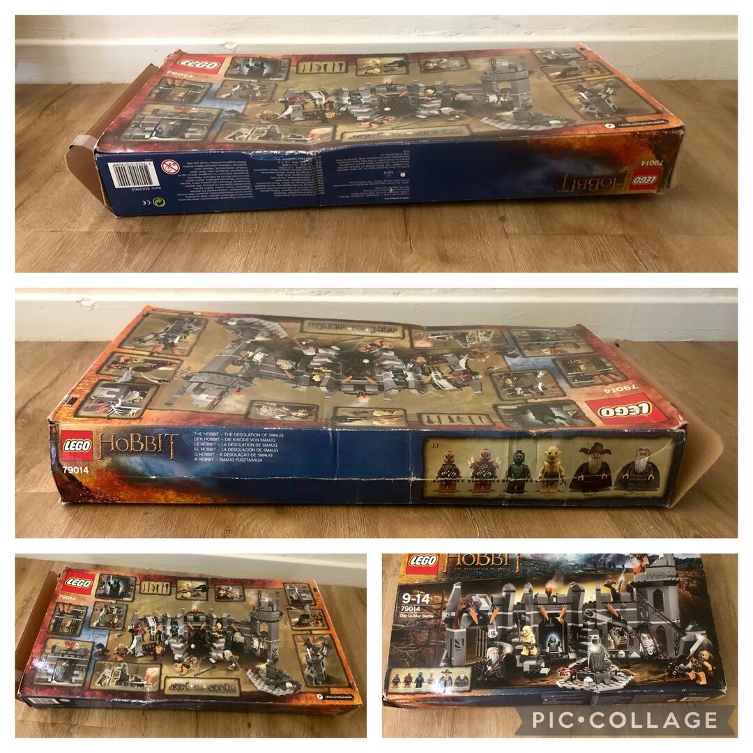 Dieser Verkauf umfasst: 1 beschrifteter Tupperware-Behälter mit Deckel, wie auf dem Bild gezeigt Originalverpackung (an einem Ende leicht geknickt, mit einigen Markierungen) 2 Handbücher (einige Markierungen auf der Seite mit den Stücken, wie auf den Bildern zu sehen) Komplettes Set (bis auf ein winziges Stück eines Hutes, das völlig unnötig und winzig ist - Stück 6064053), das Folgendes umfasst: - 6 Minifiguren mit verschiedenen Waffen und Zubehör: Gandalf der Graue, Radagast, Nekromant von Dol Guldur, Azog und 2 Gundabad Orks - Festung mit Nekromantenwand, Spinnennetz, schwingender Axt, Stacheln, Schädelfalle, Käfig mit Kran, versteckter Schatzkammer mit Zaubererring - Zu den Waffen gehören ein Streitkolben, eine Keule, 2 Stäbe und 3 Schwerter sowie ein feuerndes Katapult. Radagast, der Geisterbeschwörer von Dol Guldur ist exklusiv in diesem Set enthalten. - BITTE BEACHTEN SIE DIE FOLGENDEN ERSATZFIGUREN: - 2 dunkelbraune, glatte, flache Figuren wurden durch eine hellbraune Version ersetzt - 1 dunkelgraues Stachelteil wurde durch eine schwarze Version ersetzt Die Ersatzteile werden getrennt aufbewahrt. Es sind genau die gleichen Teile, nur in einer anderen Farbe, wie angegeben, und es macht keinen Unterschied für das Set, das gebaut wird. Die Festung Dol Guldur ist über 23 cm hoch, 43 cm breit und 12 cm hoch. Besiege die Mächte des Bösen in einem epischen Konflikt mit Dol Guldur Battle!Gerüchte über den Aufstieg eines uralten Bösen haben Gandalf™ den Grauen und Radagast™ dazu gebracht, die Festungsruinen von Dol Guldur zu untersuchen. Schnippe die magische Wand an, damit der finstere Nekromant von Dol Guldur den Zauberern erscheint. Aber Vorsicht - Azog™ und 2 Gundabad-Orks greifen gleich mit einem rollenden Katapult an. Können die tapferen Zauberer den von den Türmen herabfallenden Schädeln und den schwingenden Klingen und Äxten ausweichen und vermeiden, im Spinnennetz und im hängenden Käfig gefangen zu werden? Wird Gandalf die Schätze entdecken, die in der Statue versteckt sind? Es liegt an dir, das Schicksal von Gandalf und Radagast in diesem epischen Kampf von Gut gegen Böse zu entscheiden!