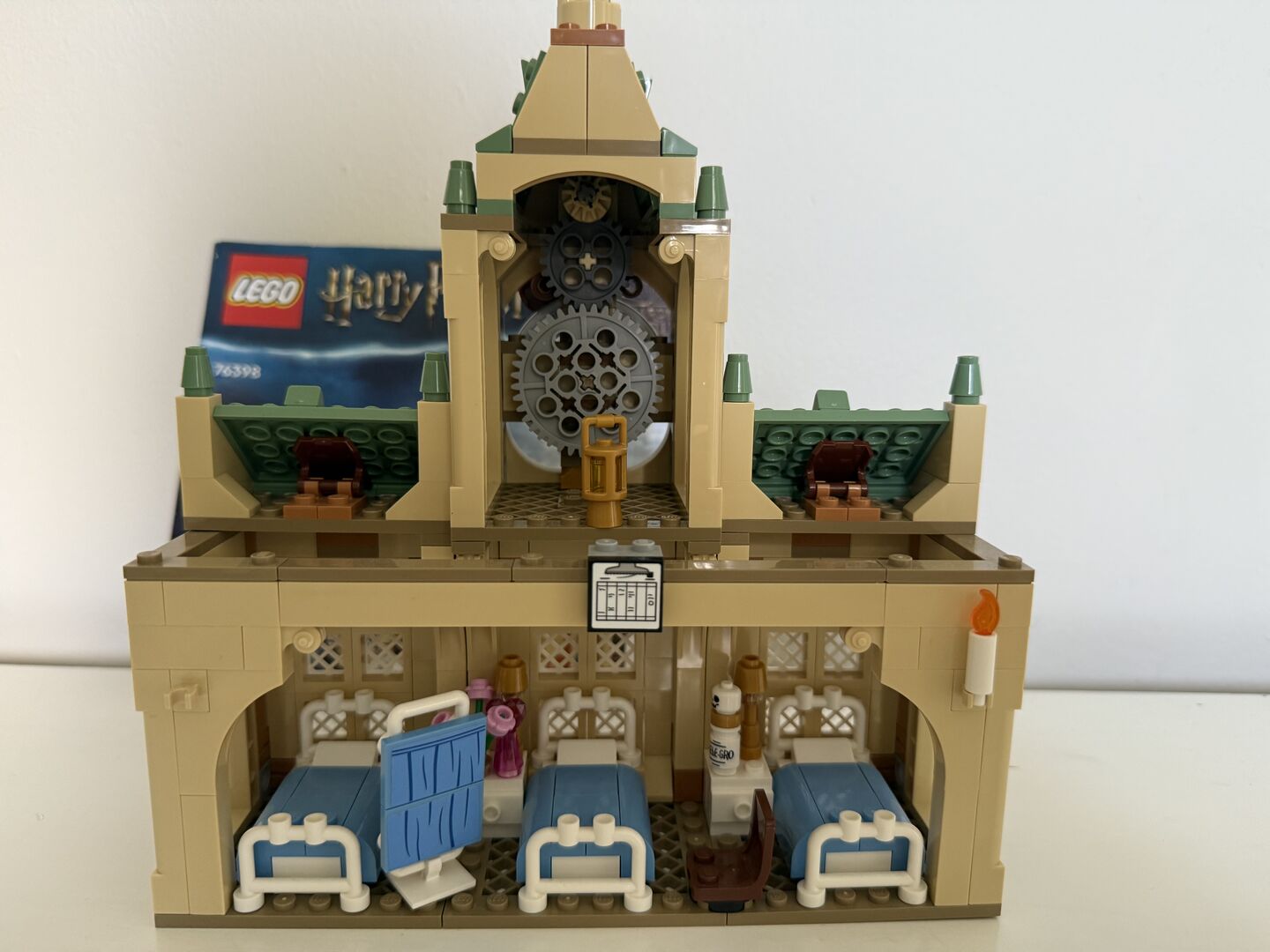 Alle Teile intakt mit 3 Krankenhausbetten und einem beweglichen Uhrwerk.