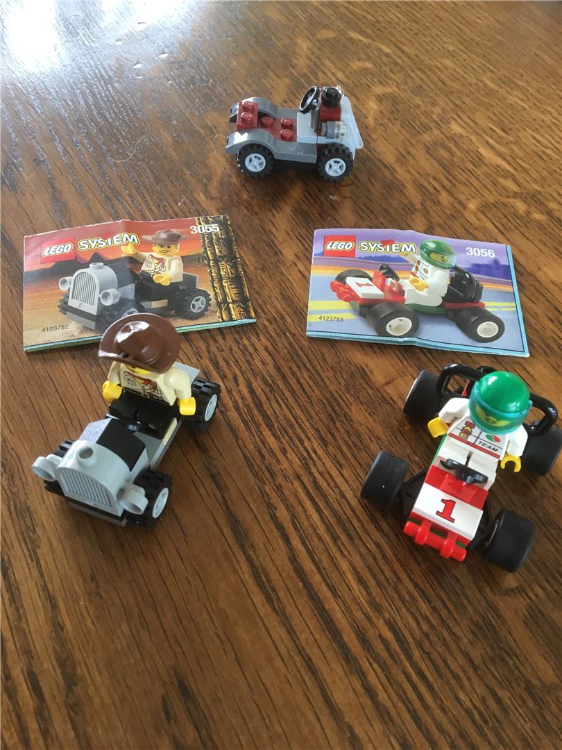 Legosystem 3055 und 3056. Sowohl mit Anleitung als auch mit Minifiguren. Dazu gehörte auch ein weiteres kleines Fahrzeug.